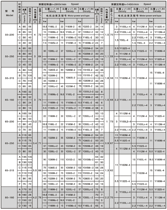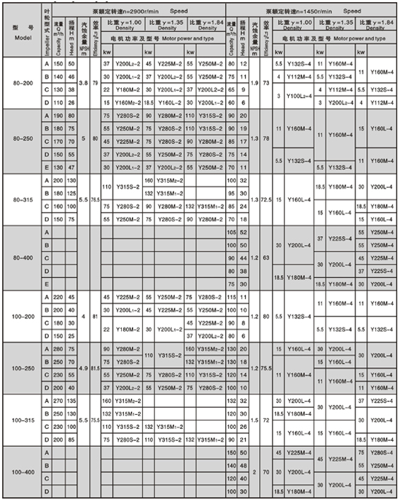 ·性能范围 流量:6-1700m3/h 扬程:5-160m