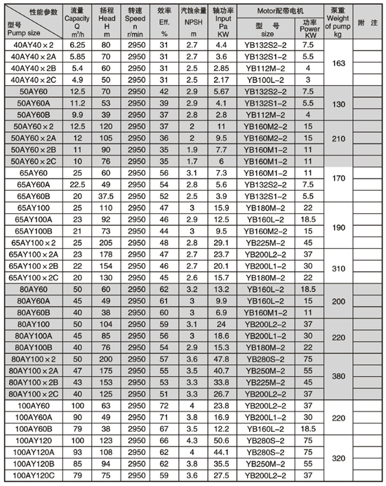 ·设计特点 可分为单级单吸和两级单吸悬臂式、单级双吸悬臂式、单级双吸和两级双吸两支撑式、两级单吸两支撑式等六种。轴承有空气冷、风扇冷和水冷三种,根据泵的不同使用温度来选用。其中风扇冷尤为适用缺水或水质差的地区,安装方式为水平中心线支撑。